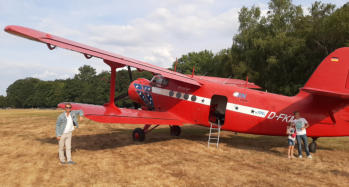 Ein Anlass, auf den Josef Schmitz und Detlev ?? stolz sein können - Die offizielle Vorstellung ihrer Projekte: - Fertigstellung der Restauration eines Bücker-Jungmann-Doppeldeckers - Fertigstellung der Piepenpol Camper nach Orginal-Plänen Eingeladen wurden Freunde, Helfer und Oldtimer-Liebhaber um diesen Anlass gebührend zu feiern.