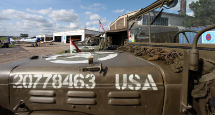 An diesem Samstag erhielten wir Besuch vom Old Hickory Historical Military Car Club aus den Niederlanden. Gegen Mittag trafen die Hickories mit zwölf Jeeps und Transportfahrzeugen sowie mehreren originalen Motorrädern aus den 1950er Jahren am Flugplatz ein und drapierten sich auf dem Grasstreifen zwischen den Oldtimerhallen. Dazu hatten wir unsere Schätze aus dem Hangar gezogen. Es ergab sich eine besondere Atmosphäre, wenn man als Schaulustiger durch die Reihen der Fahrzeuge, Motorräder und Flugzeuge aus der Zeit von fast 80 Jahren wanderte, begleitet von dezenter Musik aus dieser Zeit. Hierzu wurde auch in der Aachener Zeitung berichtet. Die Artikel sind hier zu finden.